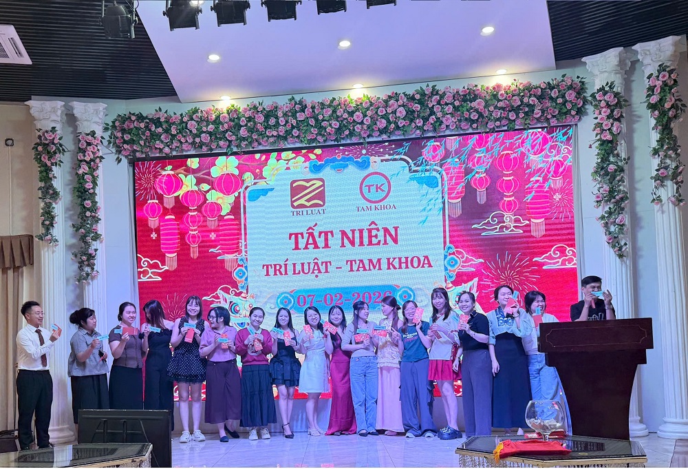 Sau khi những phần quà may mắn đã tìm thấy chủ nhân thì trong ánh đèn lung linh và tiếng nhạc xuân rộn ràng, toàn thể thành viên công ty Trí Luật – Tam Khoa đã cùng nhau nhìn lại hành trình 365 ngày vừa qua – một hành trình có thử thách, khó khăn nhưng cũng đầy ắp những cột mốc tự hào. Một lần nữa, xin chúc toàn thể đại gia đình Trí Luật – Tam Khoa một năm mới An Khang – Thịnh Vượng, cùng nhau chinh phục những đỉnh cao mới và viết tiếp những chương thành công rực rỡ hơn nữa.