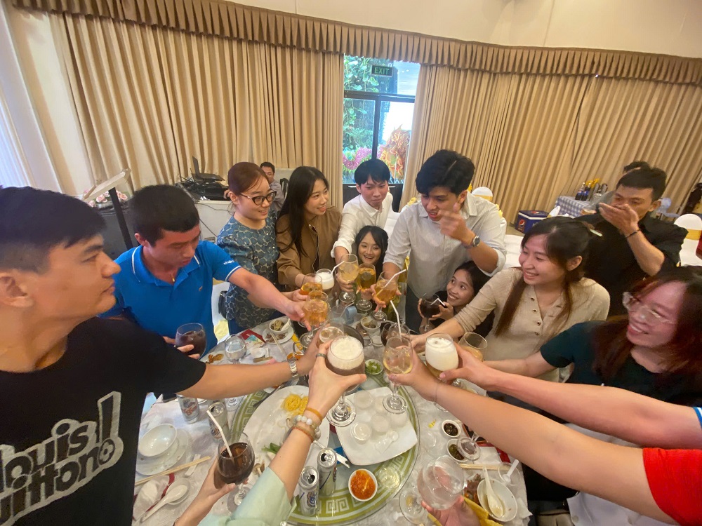 (Đại gia đình Trí Luật – Tam Khoa cùng nâng ly chúc mừng)