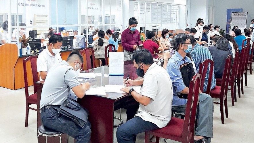 Người dân, doanh nghiệp làm thủ tục khai thuế giao dịch bất động sản tại Chi cục Thuế TP. Thủ Đức. Ảnh: Sơn Nam